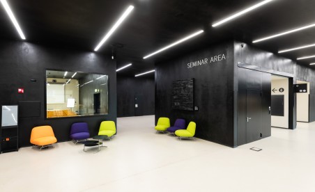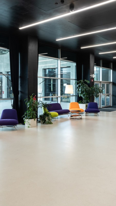 Wenn du für deine Veranstaltung in unserer Seminar Area ein Catering planst, kommt unser Foyer ins Spiel: Zentral zwischen allen Seminarräumen gelegen, steht dir hier reichlich Platz zur Verfügung, außerdem eine modern ausgestattete Bartheke mit Kühlschrank.