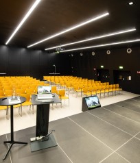 Up to 152 seats and modern equipment: Seminar 2 offers plenty of space, a large stage for several speakers and flexible technology. This makes it ideal for conferences, panel discussions, larger workshops and lectures. A mobile wall system also allows us to combine Seminar 1 and Seminar 2 into a single room with up to 450 seats.