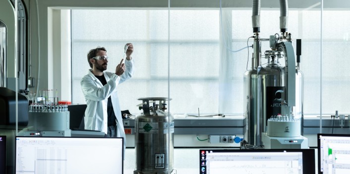Il laboratorio di spettroscopia NMR si occupa della caratterizzazione qualitativa e quantitativa di piccole molecole e proteine negli alimenti e negli organi vegetali utilizzando la risonanza magnetica nucleare (NMR) ad alta risoluzione. La spettroscopia NMR, non invasiva e non distruttiva, consente di ottenere “un’impronta digitale” della molecola e di studiarne la struttura e la dinamica molecolare. Questa tecnica viene utilizzata per indagare l'autenticità, la tipicità e l'origine dei prodotti agro-alimentari locali, nonché per studiare la struttura chimica e la funzione di molecole biologiche sconosciute.